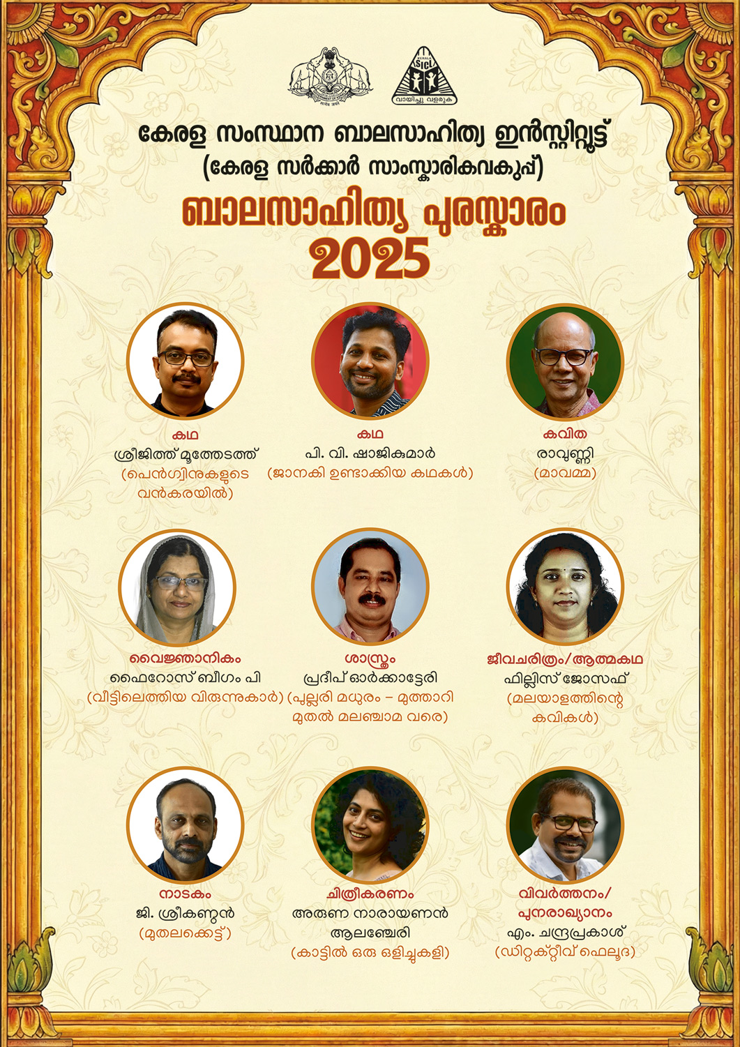 സംസ്ഥാന ബാലസാഹിത്യ ഇൻസ്റ്റിറ്റ്യൂട്ടിന്റെ 2025ലെ ബാലസാഹിത്യ പുരസ്കാരങ്ങൾ പ്രഖ്യാപിച്ചു